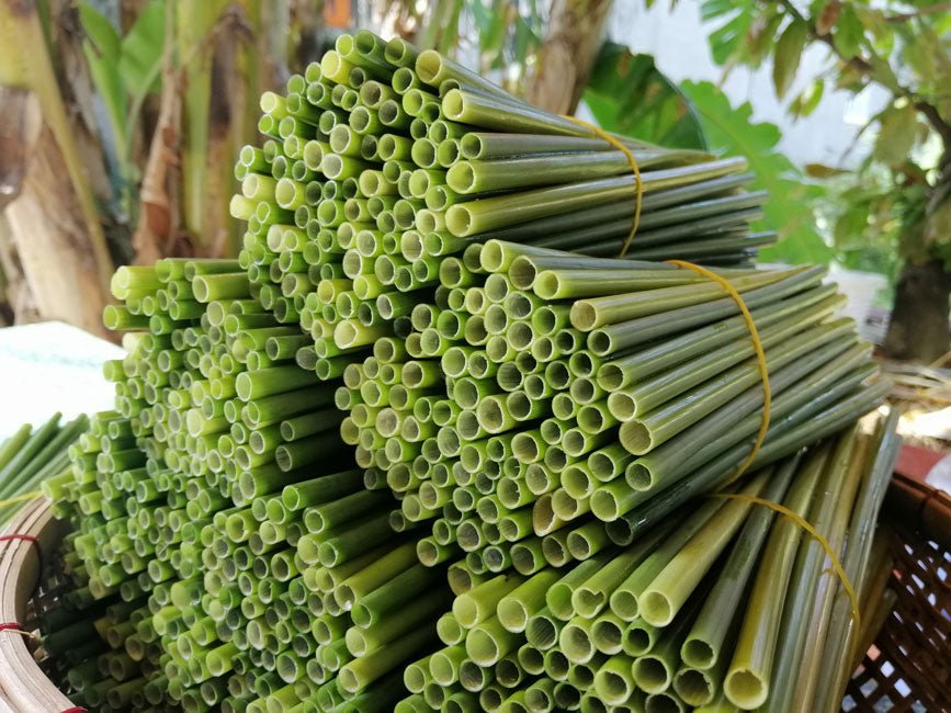 Fresh Straws are made from green grass that grows naturally and abundantly in Mekong Delta, Vietnam. Thanks to its sturdy, hollow body, the grass has been harvested and used in this region for many purposes, including straws. Also known as a Cyperus grass straw, it is a simple and elegant solution to replace its plastic counterpart.